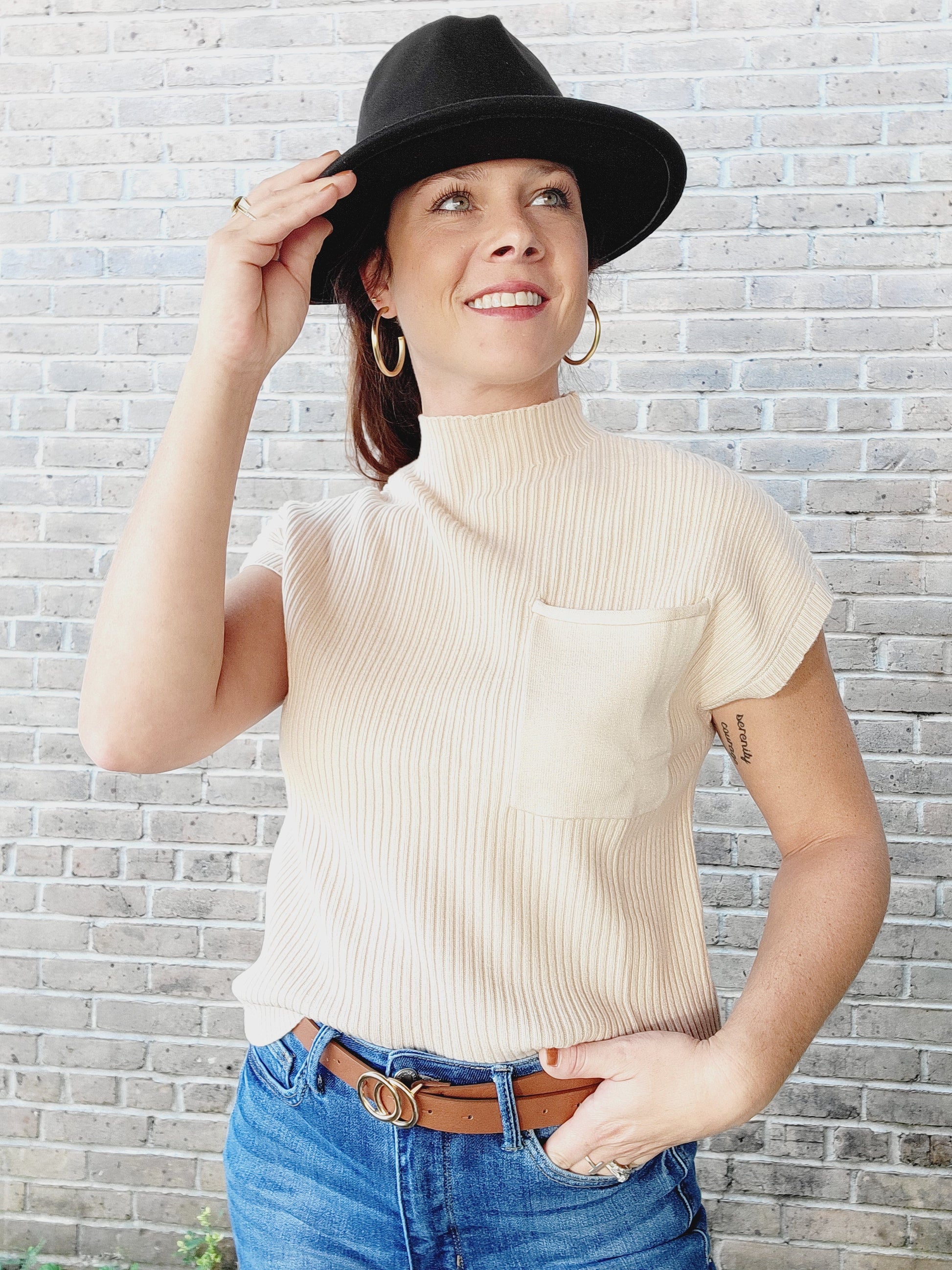 Indulge in the luxurious feel of our Amelia Knit Top. Crafted from a super soft fabric, this top features a convenient pocket and stylish short sleeves. Elevate your wardrobe with this must-have piece that combines comfort and sophistication. Style through all of your favorite seasons!