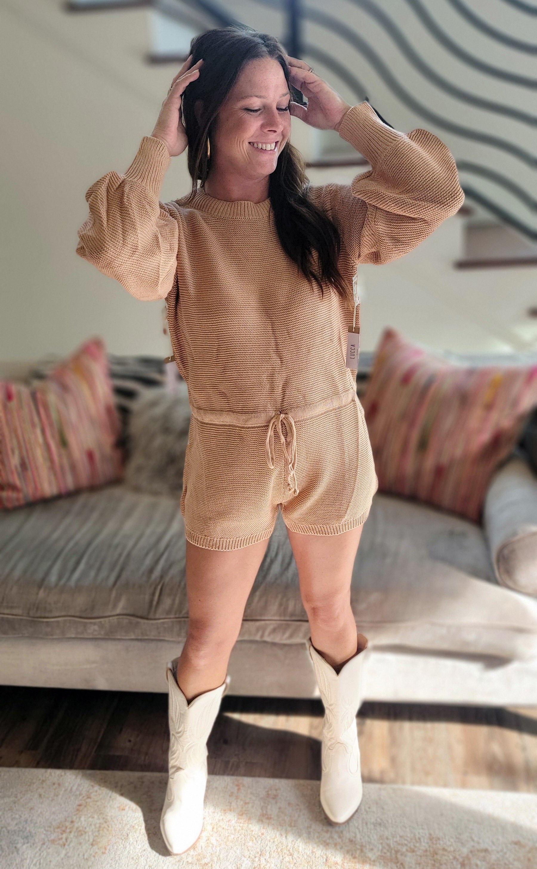 Add a touch of elegance to your wardrobe with the Brinkley Knit Romper. Crafted in a soft rust color, this romper features a cinch waistband, allowing you to dress it up or down for any occasion. A versatile and stylish addition to any fashionista's collection.