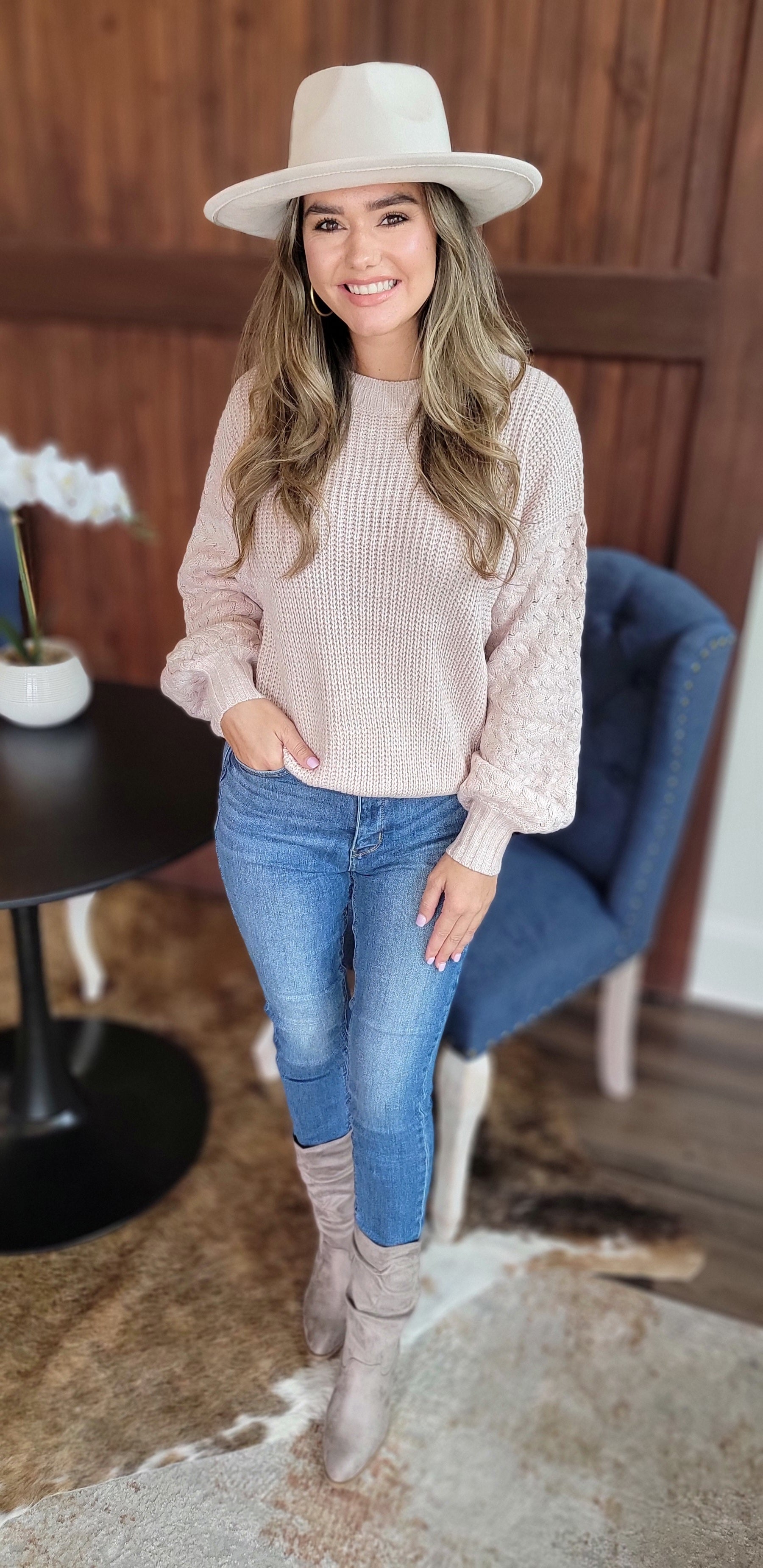 Get cozy and girly with our Corded Sweater! These bubble sleeves add a touch of fun to our soft and comfortable design. Perfect for any occasion - whether you're relaxing at home or going on a night out with the girls. Make a statement while staying comfortable in our Corded Sweater!