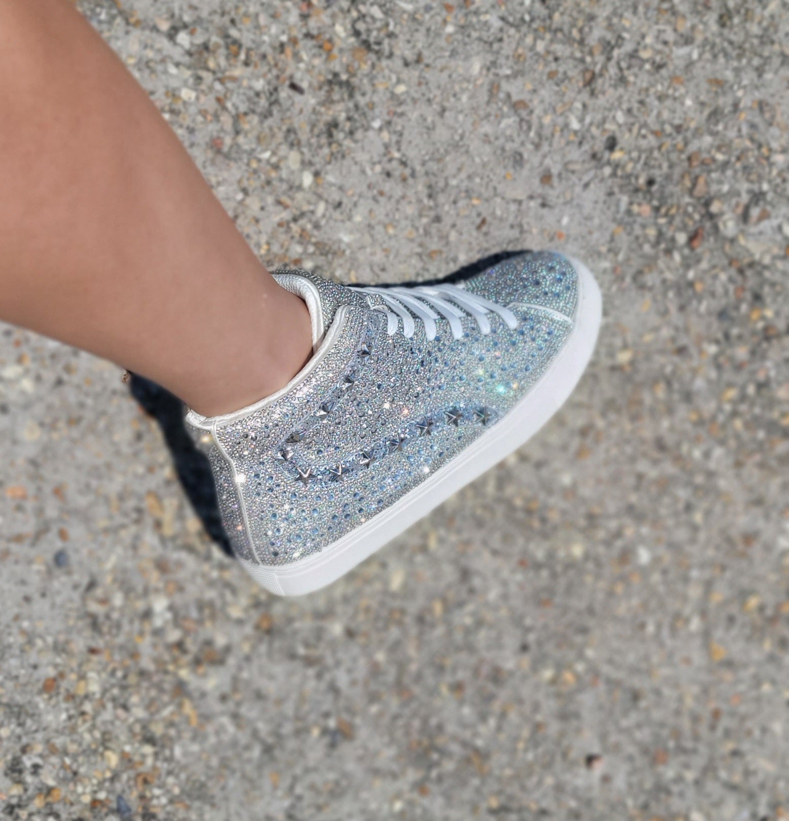 Corkys Flashy High Top Sneakers are the perfect combination of style and comfort! Featuring a unique rhinestone and star design for a truly glamorous look, these sneakers are sure to turn heads! The sparkly design is perfect for any formal occasion or casual get-together! Fit is true to size! All Corkys come in whole sizes. If you are a half size, size up to the next whole size for the perfect fit!