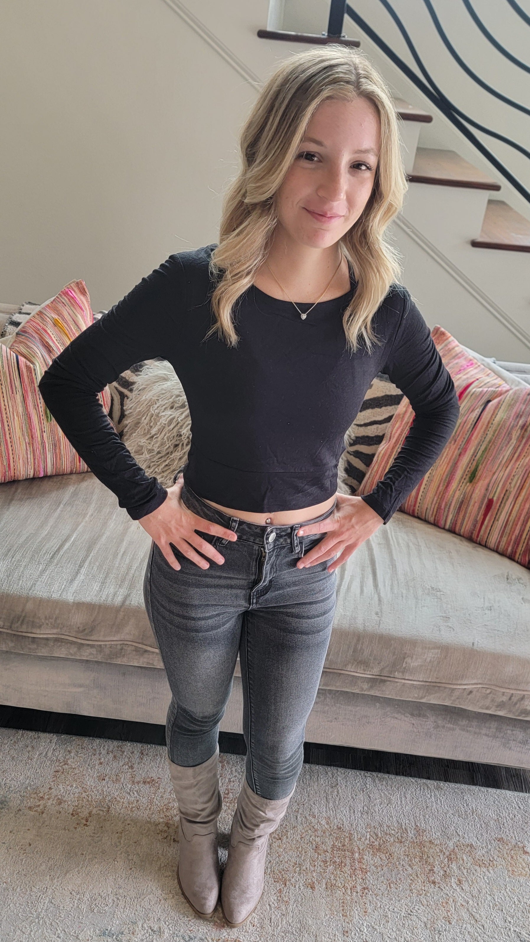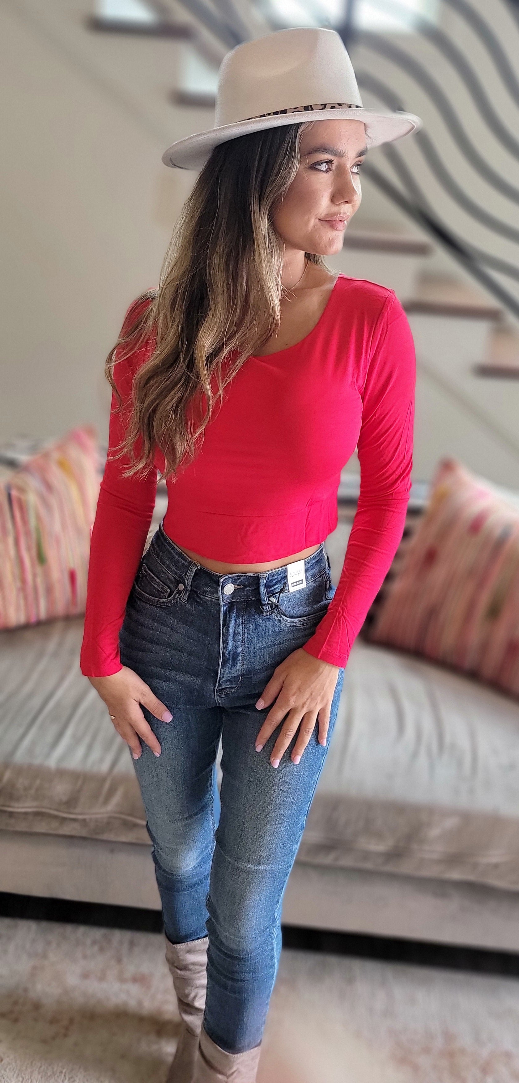 Introducing the Cy Crop Top, a premium addition to your wardrobe. Crafted with buttery soft fabric, this long sleeve top is available in both ruby and black, elevating your style to effortlessly chic. Experience luxury and comfort in one with the Cy Crop Top.