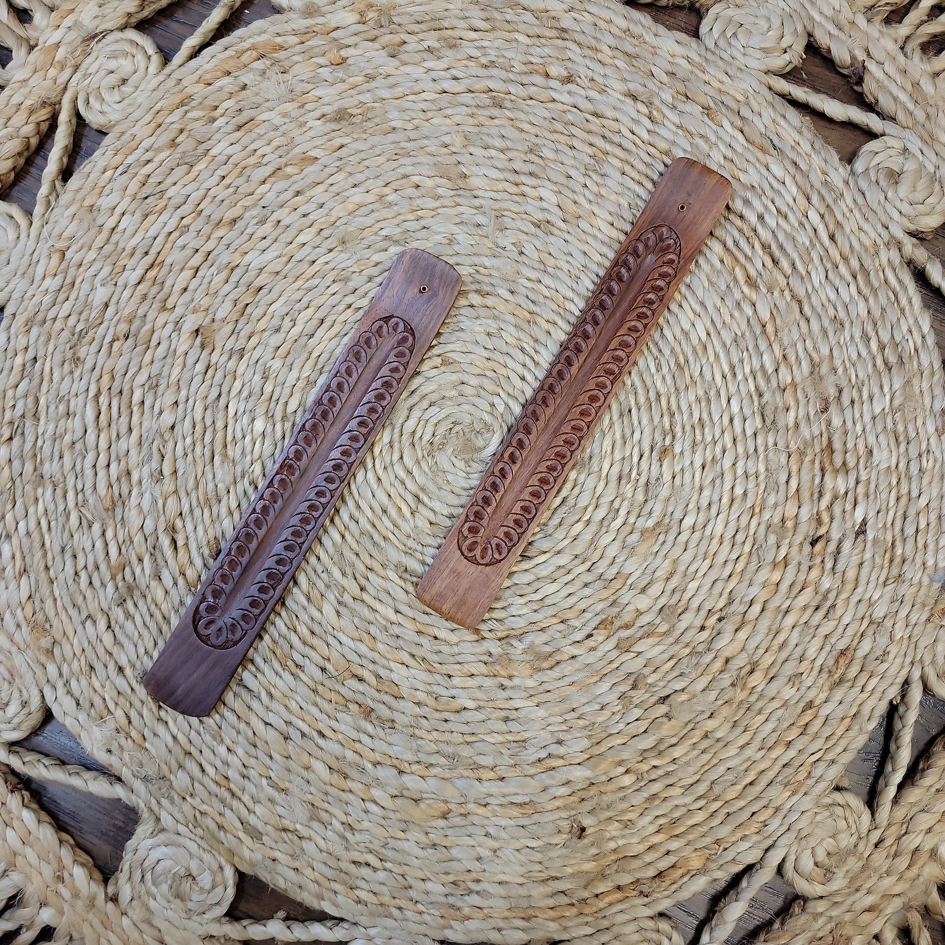 Wooden incense burner available in Lotus Flower or Feather.