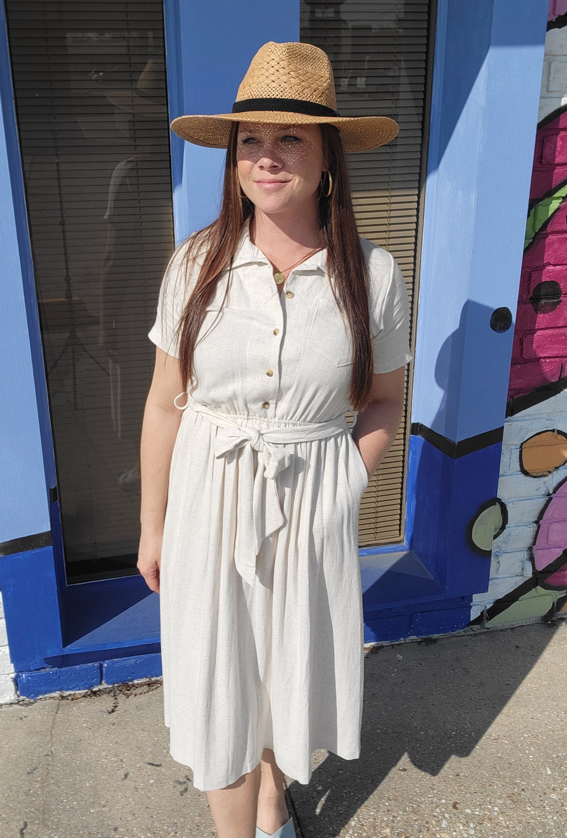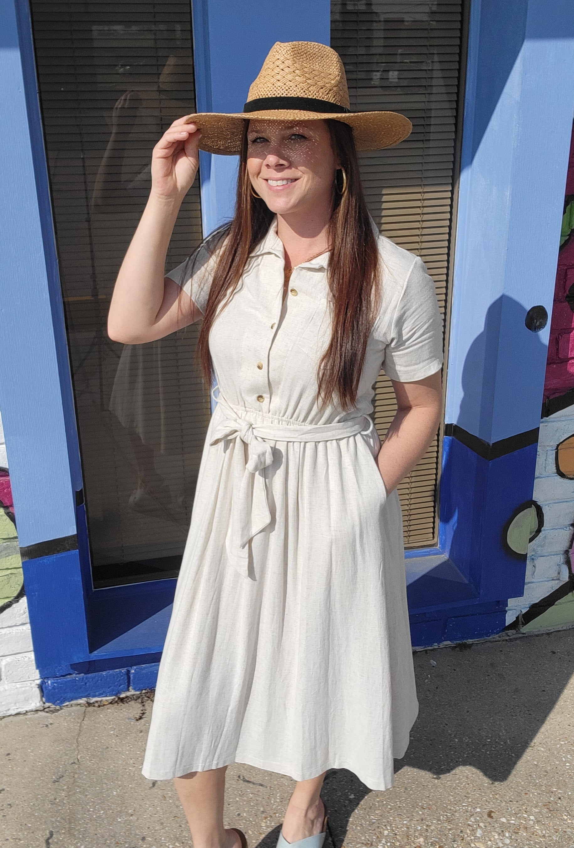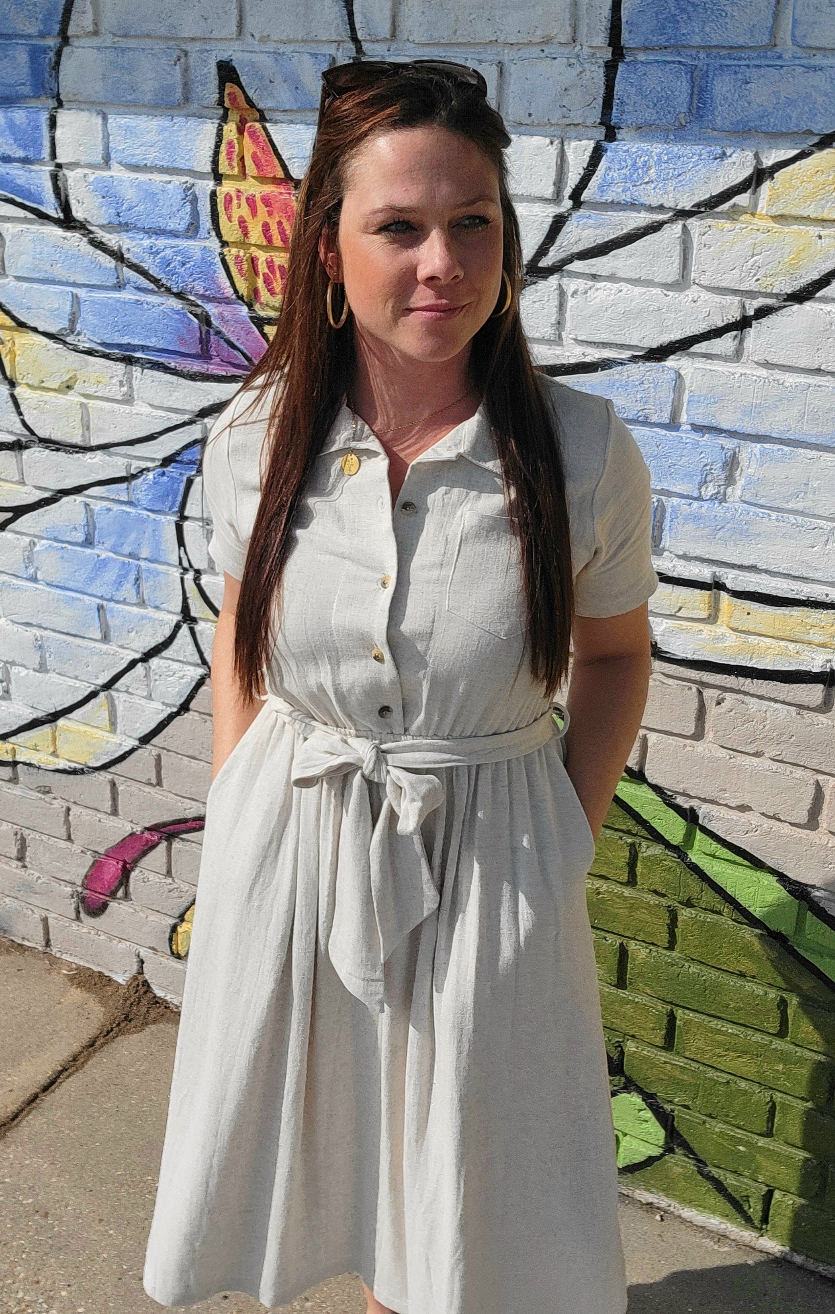 Indulge in luxury with our Linen Dress. Made from premium linen material, this dress exudes sophistication and elegance. The tie waist detail flatters your figure, while the convenient pockets add functionality. Elevate your wardrobe with this must-have piece.