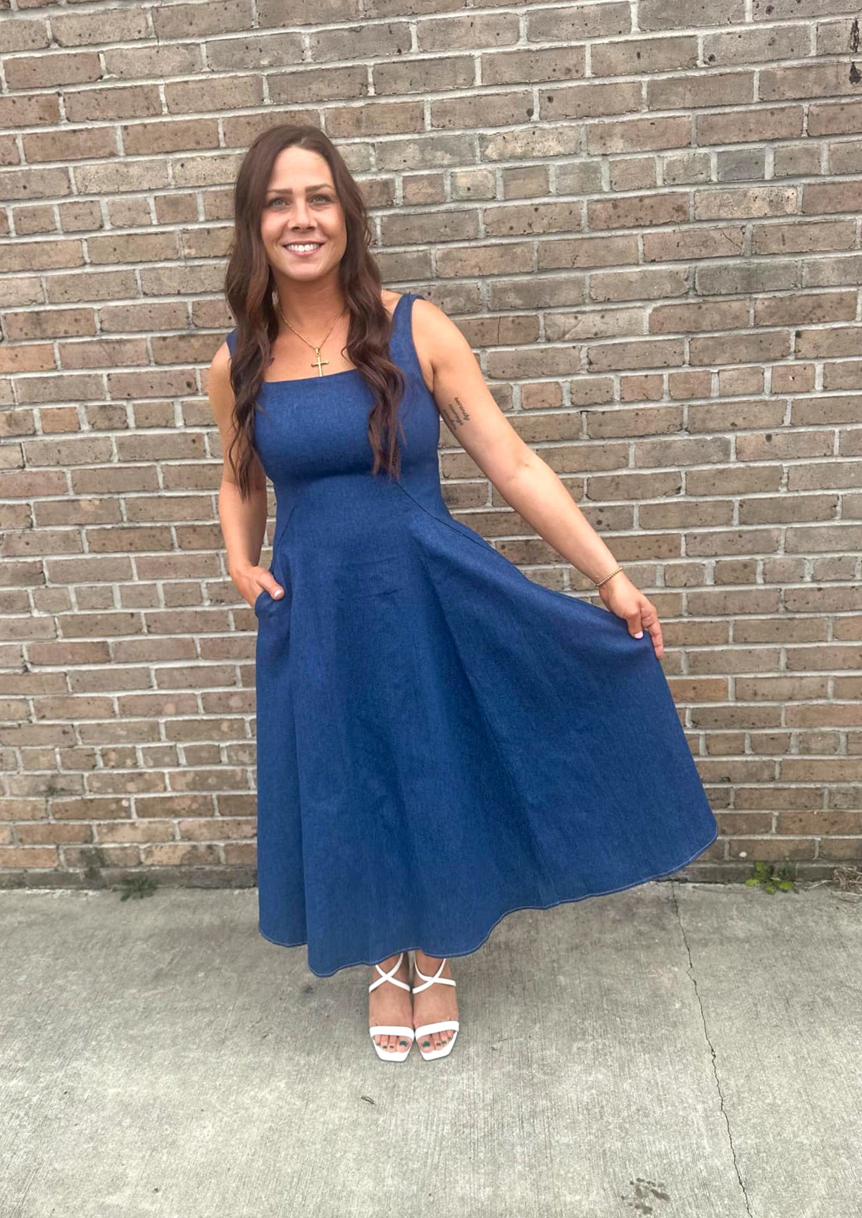 Stay effortlessly stylish with our Nonchalant Midi Denim Dress! With a flattering fit and dark denim fabric, this dress is perfect for any occasion. Plus, it's functional with pockets and features a chic square neck. Add a touch of class to your wardrobe today!