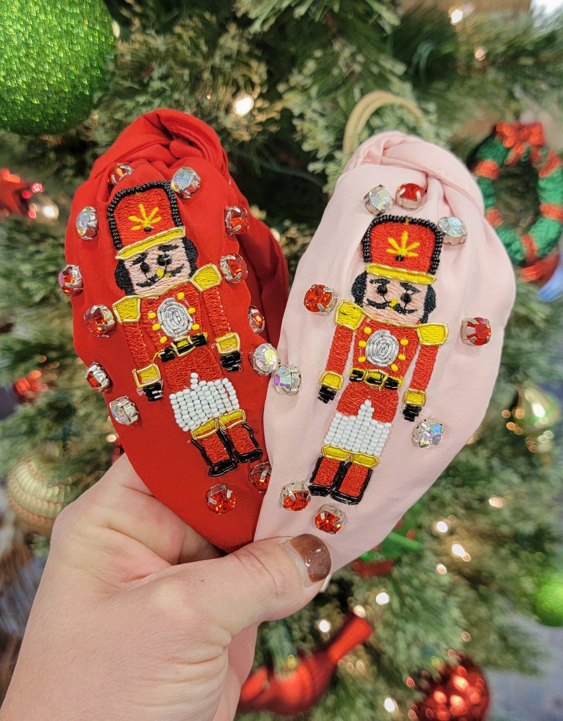 You'll look so festive in this Nutcracker Knotted Headband! Crafted with fine beads in either pink or cheery red, this trendy headband will add some serious holiday cheer to your seasonal attire!