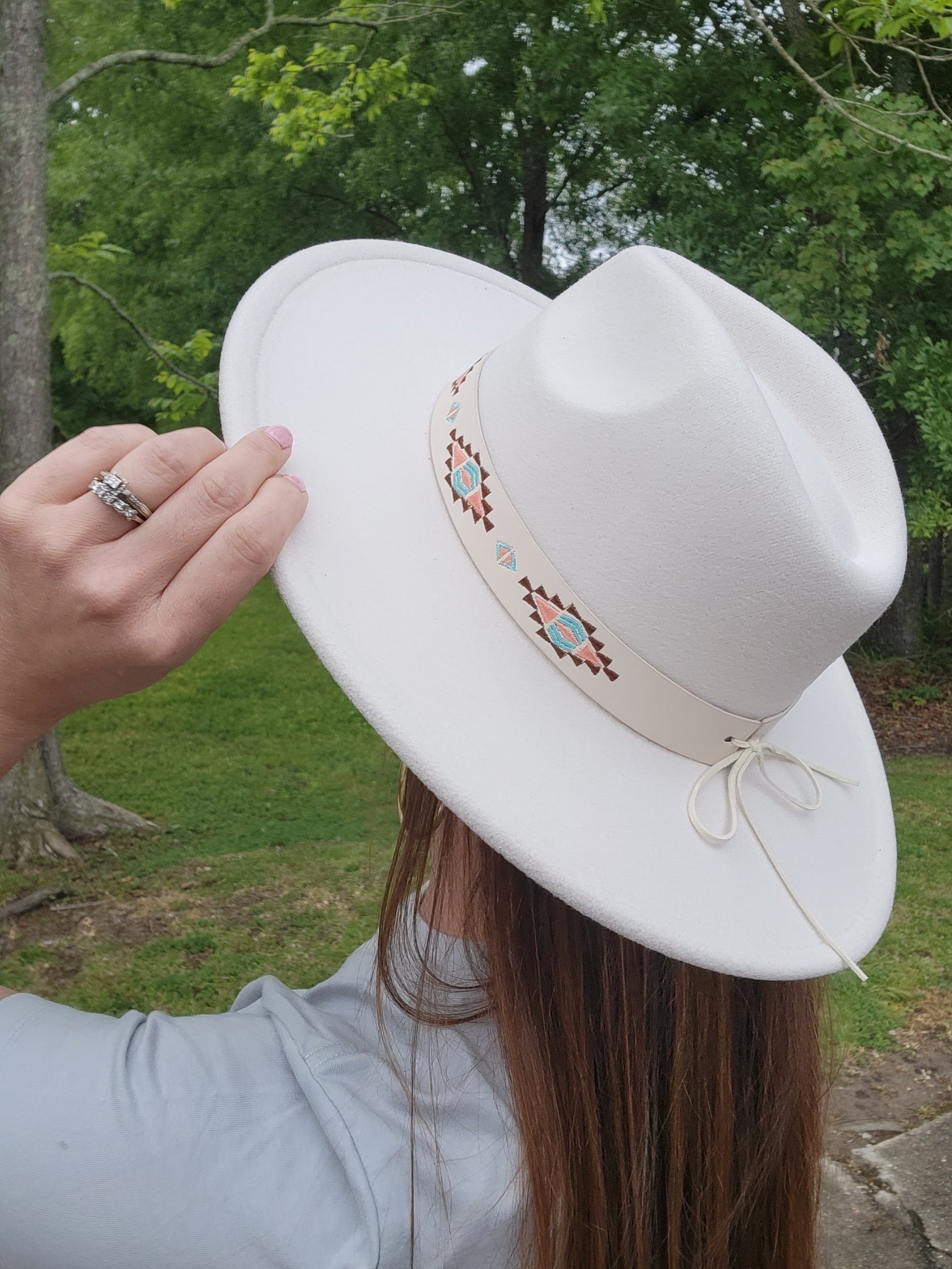 Experience a unique look with The Kylie Hat! This vegan hat features a cream color with stylish boho details! Perfect for any occasion, this hat adds a fashionable statement with a classic and modern touch!